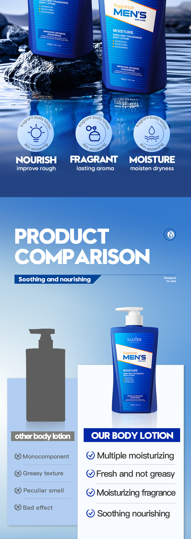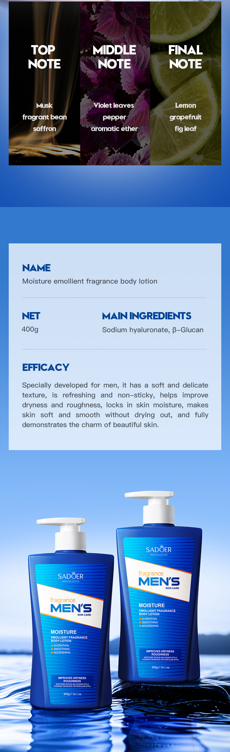 Men's moisturizing scented body lotion for hydration and skin brightening specially for men.