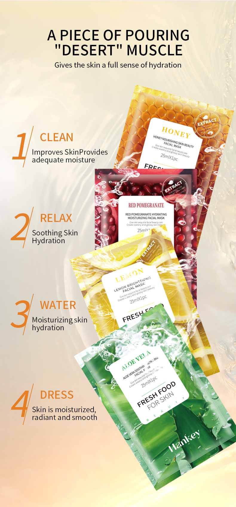 Moisturizing Sheet Mask, Fruit Moisturizing Mask, Hydrating and Moisturizing Honey Mask, Skincare
